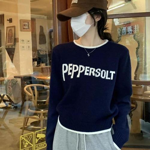 [샵앤]여성 라운드넥 영문 레터링 데일리 긴팔 니트티 21DS-WKN-4982-네이비