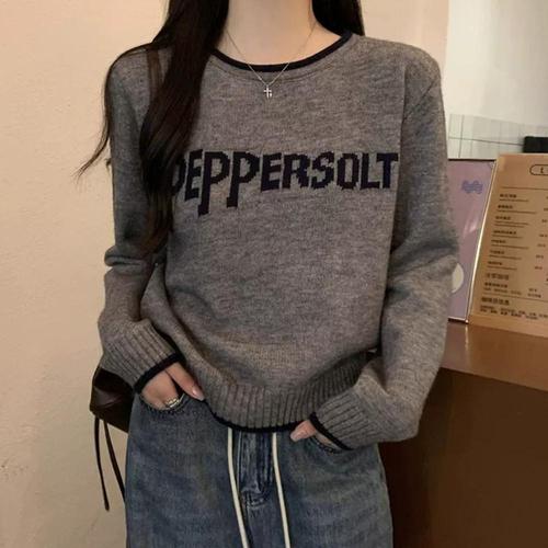 [샵앤]여성 라운드넥 영문 레터링 데일리 긴팔 니트티 21DS-WKN-4982-그레이