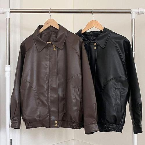 봄 가을 여성 레더 재킷 캐주얼 트렌치 코트 루즈핏 데일리 라이더 자켓 기질 빈티지 PU 가죽 자켓 ZZL
