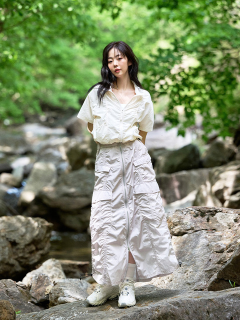 [오프그리드] OG 프론트 오픈 카고 스커트-라이트베이지