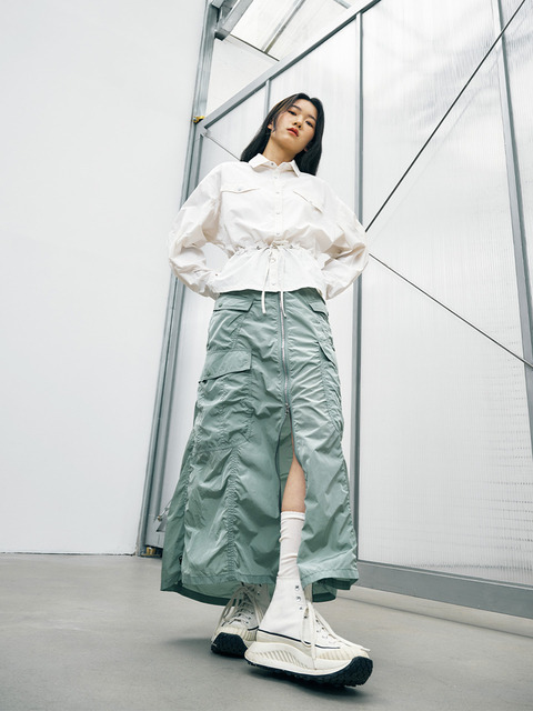 [오프그리드] OG 프론트 오픈 카고 스커트-라이트카키