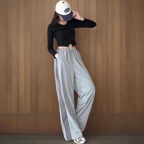 [신상오픈런]여성용 캐주얼 사이드라인 와이드 팬츠 밴딩 트랙 바지