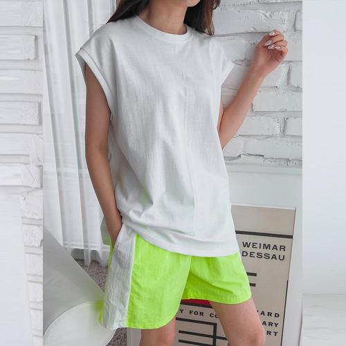 남여공용 여름 플로우 박시 민소매 티셔츠 5C-TS5-Q032-라임