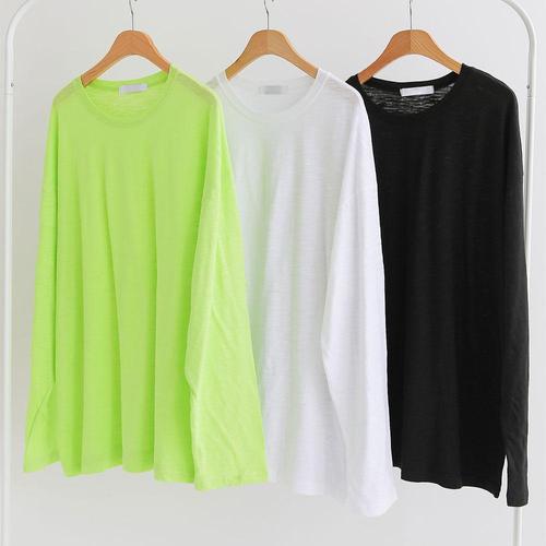 남여공용 여름 30수 오버핏 면 긴팔 티셔츠 5C-TSS-Q040-라임