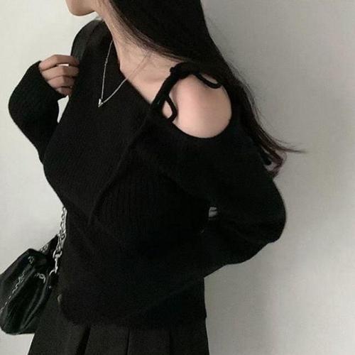 티탑오픈숄더 트렌드 니트스웨터 코디 캐주얼 리본끈 우먼 WFJIXJN
