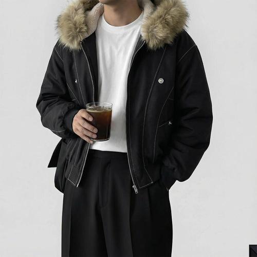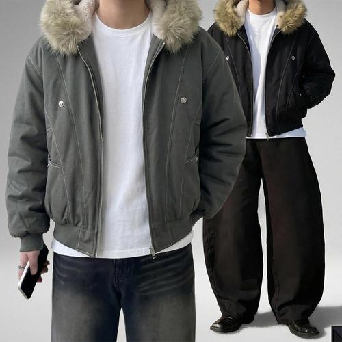 대왕 라쿤 야상 패딩 점퍼 2color / 얼굴소멸, 핏보장, 카키 블랙 페이크퍼 패딩 루즈핏