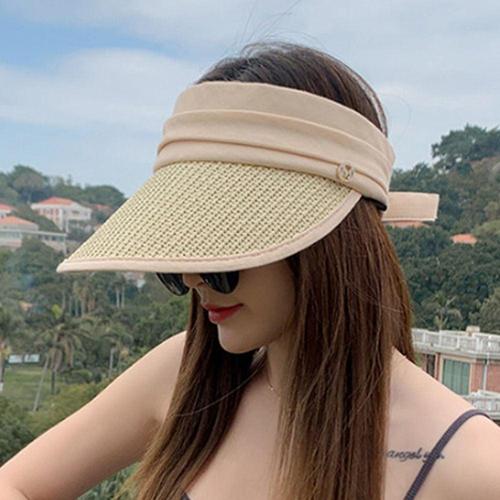 햇빛 차단 가리개 여성 라탄 썬캡 여름 모자 베이지 WFIRJV0