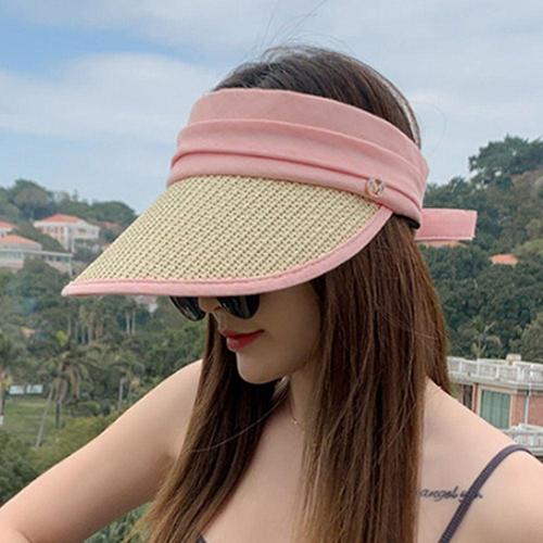 햇빛가리개모자 자외선차단모자 여름 썬캡 차단 햇빛 핑크 라탄 WFISAJF