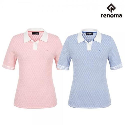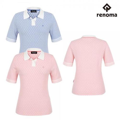 [레노마골프] 여성 타공 배색 카라 반팔 티셔츠 RWTYN6119-101