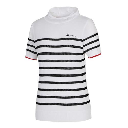 [레노마골프]레노마 골프 여성 골프 소프트한 투톤 패턴 소매 롤업 반팔 니트 N 5207 CA3843808