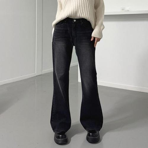 [다잇템]여자 캣워싱 보온 나팔 논스판 검정데님 청바지