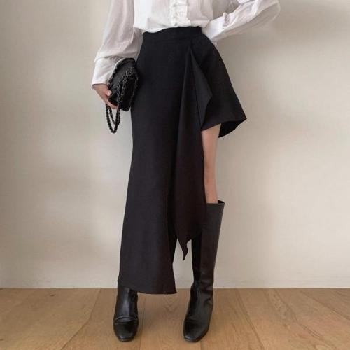[옷자락]여성 독특한 랩 치마 레이어드 언발란스 반바지