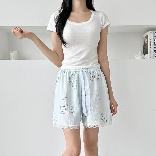 [신상오픈런]|CCP8CAB|여성 레이스 허리띠 귀여운 패턴 잠옷 반바지_21973397_597559
