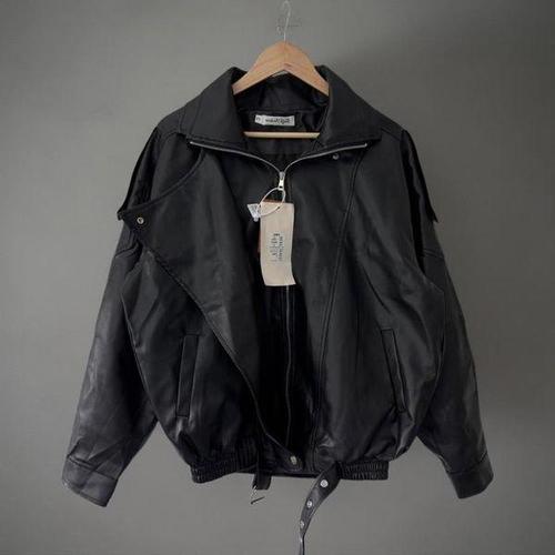 [신상오픈런]여성 오버사이즈 가죽 자켓 벨트 라이더 스타일 블랙