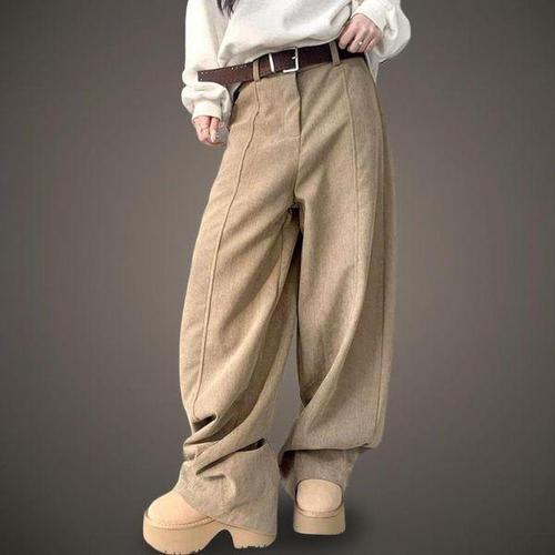 [신상오픈런]여성용 겨울 와이드핏 절개 밴딩 출근 바지 링벨트