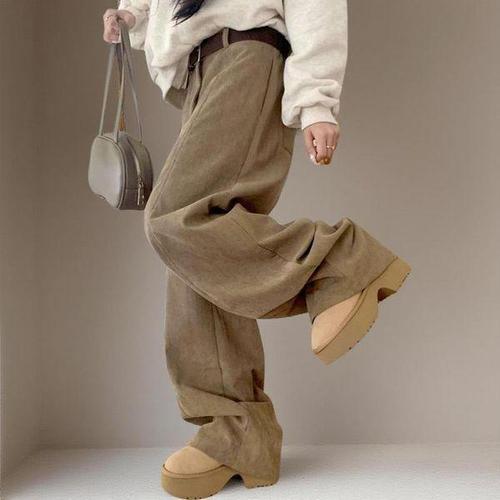 [신상오픈런]여성 코듀로이 골덴 절개 밴딩 와이드팬츠 벨트 바지