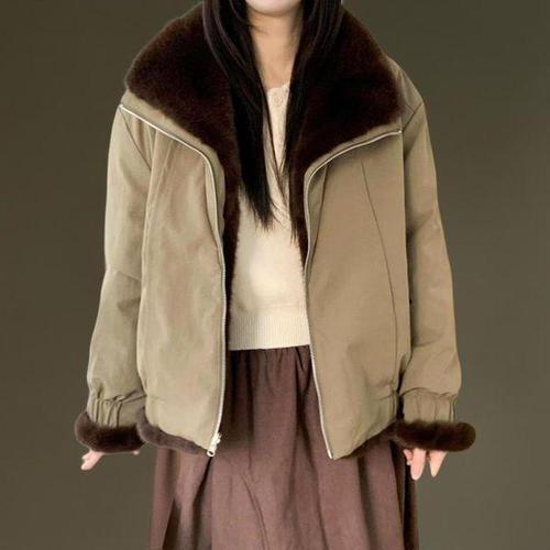 [신상오픈런]여성 하이넥 퍼 양면 크롭 자켓