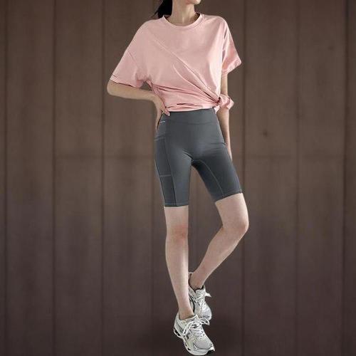 [신상오픈런]여성용 루즈핏 반팔티와 레깅스 반바지 세트 스포츠웨어