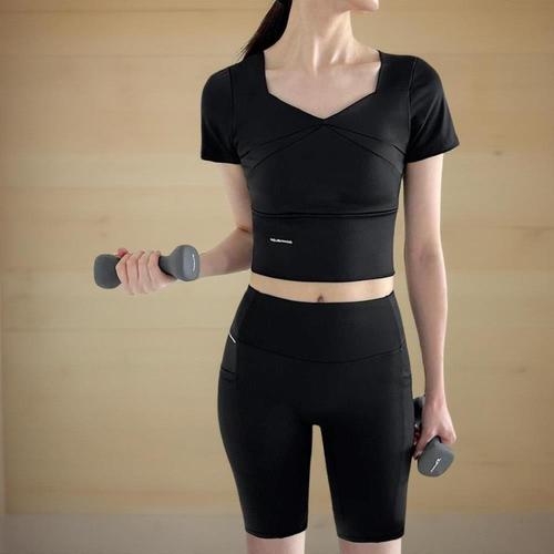 [신상오픈런]여성용 크롭 반팔 티셔츠 레깅스 세트 5부 스포츠웨어