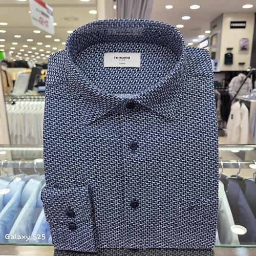 [레노마셔츠]라인 믹스 기하학 폴리 시어 서커 프린트 일반핏 긴소매RQSSG1470WH_GN_GN_GN