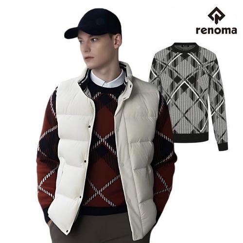[레노마골프]레노마 골프 남성 겨울 울 혼방 체크 패턴 방풍 안감 모크넥 니트 스웨터1 O4204
