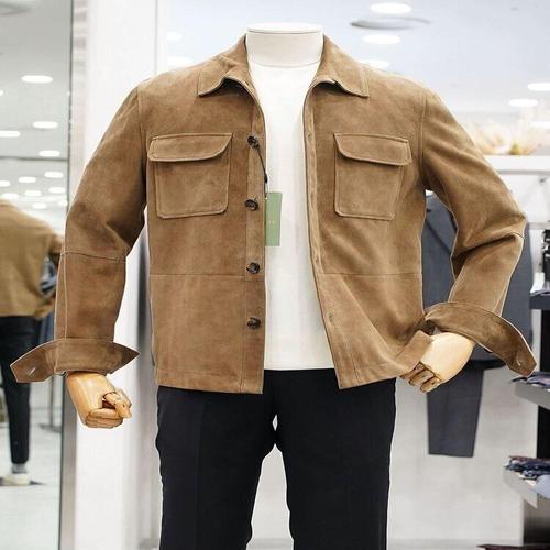 [레노마 옴므]봄 가을용 베이지컬러 기본핏 양가죽 100% 트러커 점퍼 CHRQAMLU03A_IC