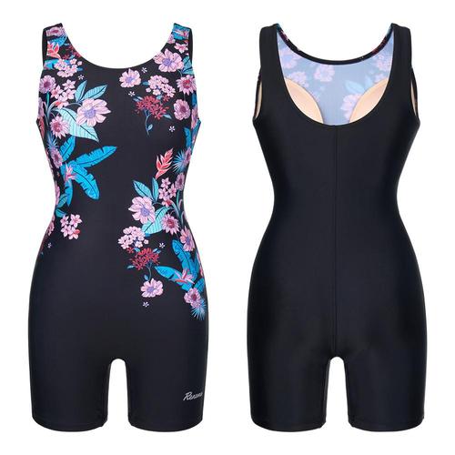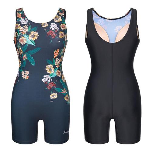 [레노마수영복]여성 플라워 U백 3부 반신수영복 블랙 RN-LF2F861-BK