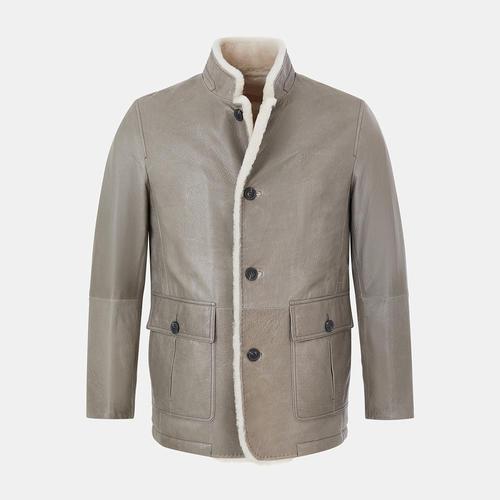 [바쏘옴므]양가죽 자켓 이태리 차이나카라 구스다운 가죽 점퍼 차콜 Z4UB14-2