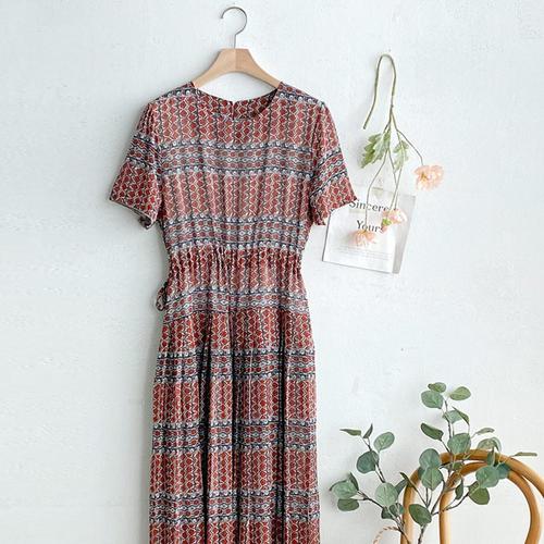 [샵앤]여성 라운드 바캉스 기하학 패턴 여름 롱원피스 BONG-WDR-4649-레드