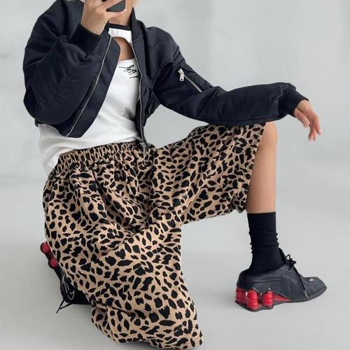[옷자락]여성 레오파드 반바지 와이드핏 밴딩 남성 트렌디한 쇼츠