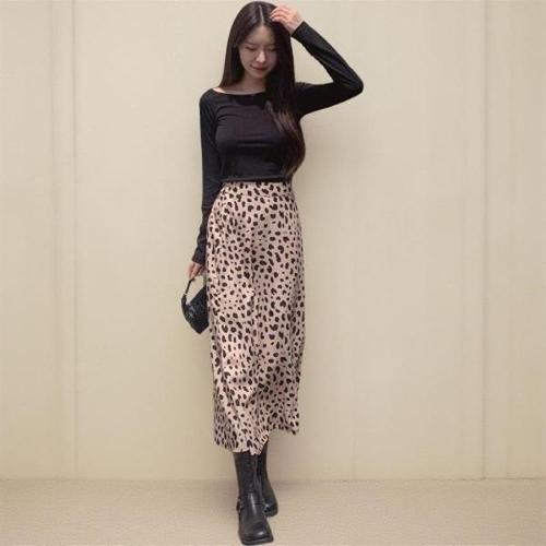 [옷자락] 여성 레오파드 패턴 옆슬릿 롱스커트