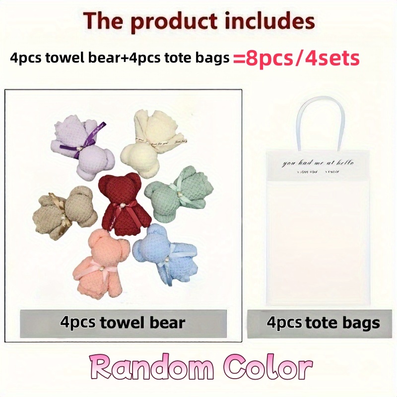TEMU 8/14피스 편안한 플러시 곰 모양 타월 선물 세트 - 초소프트 코랄 플리스 소재, 고흡수력, 빠른 건조, 투명 선물 가방 포함, 웨딩, 파티, 크리스마스, 새해, 데이 선물, 연인을 위한 선물