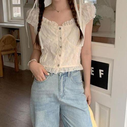 [다잇템_패션]여자 나들이 탱크 로맨틱 프릴 레이스 블라우스