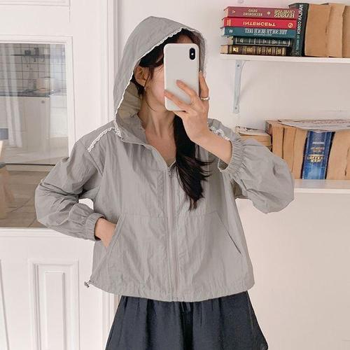[유야]레이스 후드 바람막이 점퍼 자켓 -JK0098H- 여성 가을