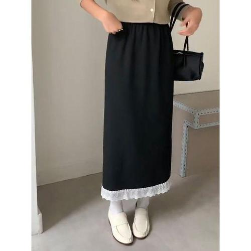 [샵앤][샵앤] 여성 밴딩 레이스 H라인 뒤트임 롱스커트 21DS-WSK-4911-진청