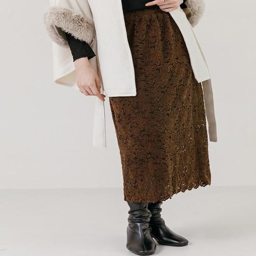 [막스까르띠지오]벨루아 레이스 밴딩 롱스커트