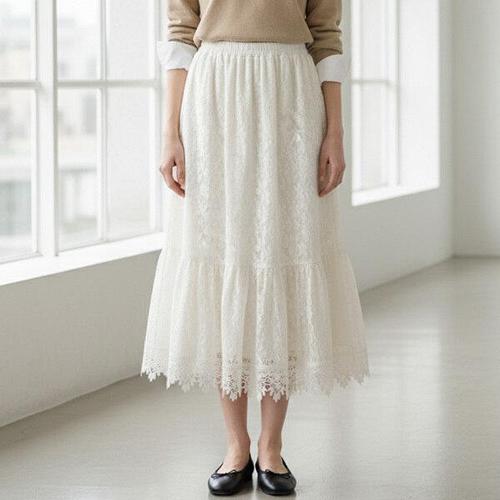 [다잇템]여성 일상용 롱 하트 신축성 레이스 치마