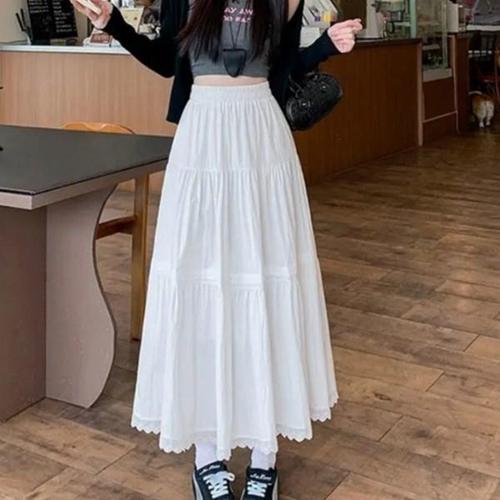 [옷자락]여성 무지 컬러 레이스 프릴 밴딩 롱 스커트