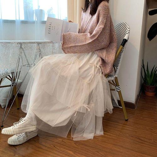 [오너클랜]인기상품 여성 귀여운 망사스커트 캉캉 롱스커트 레이스스커트 [WE6900A_260311]