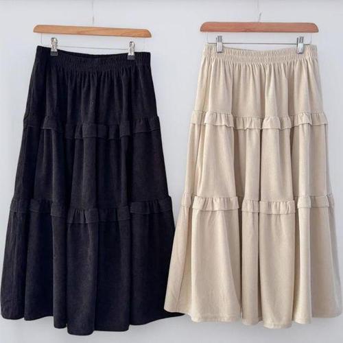[신상오픈런]여성용 빅사이즈 프릴 롱스커트 코듀로이 캉캉 스타일 데이트룩