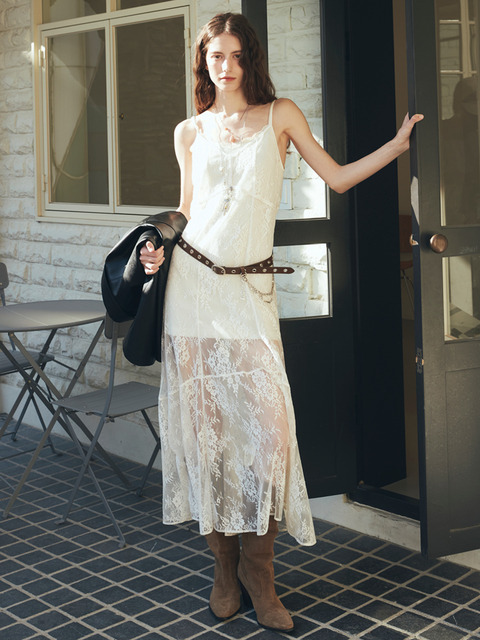 [오앨] 플라워 레이스 슬립 롱 드레스_아이보리