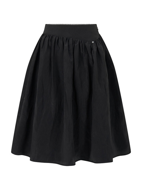 [루즈슬립오버] 나일론 레이스 셔링 롱 스커트