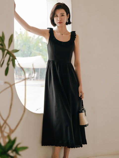 [럭키슈에뜨] Lace Patch Slip Long Dress_LFDAW21370YEX