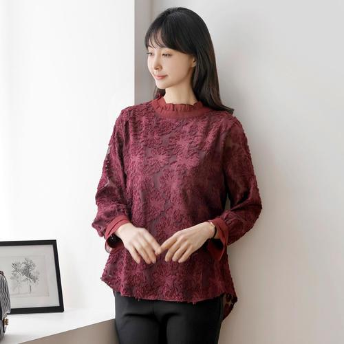 [드리다]여성 프릴 레이스 시스루 플레어 빅사이즈 블라우스 봄 가을