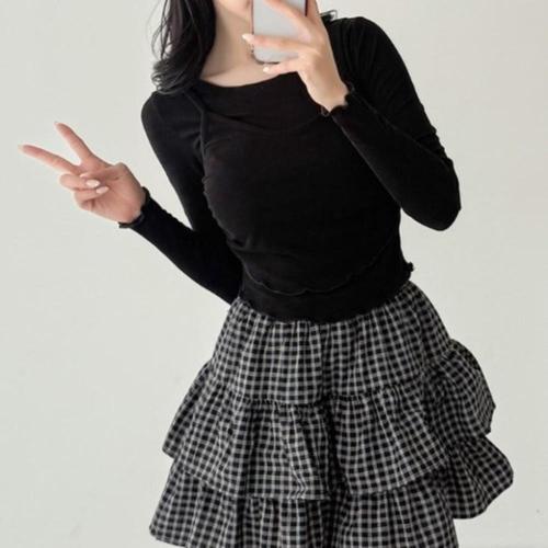 [옷자락]여성 레이온 레이어드 나시 긴팔 셔링 물결 디자인
