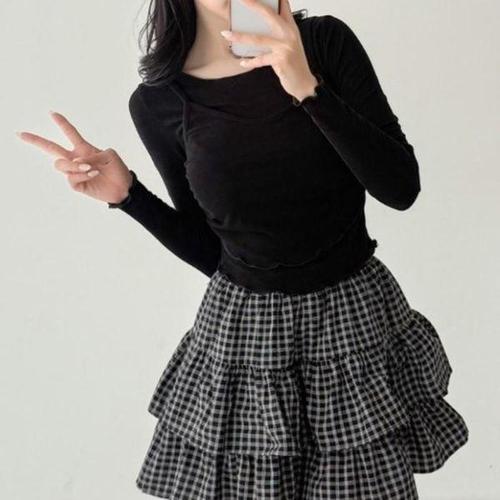[에이치플러스몰]레이어드룩 나시 크롭탑 크롭 여자 Y2K 골지