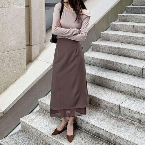 [미라클세븐]여성용 일상 쉬폰 레이어드 A라인 긴 치마
