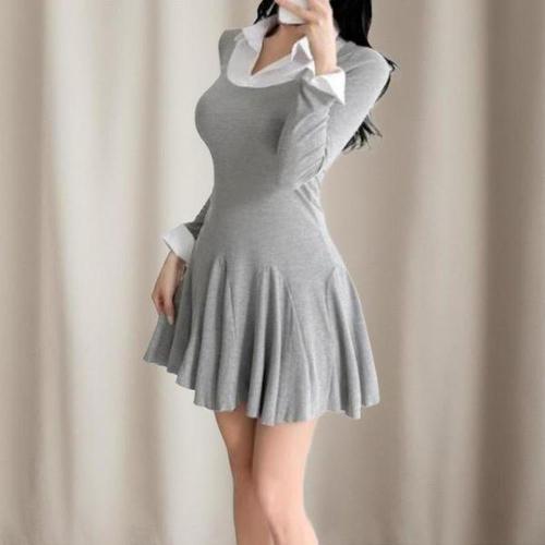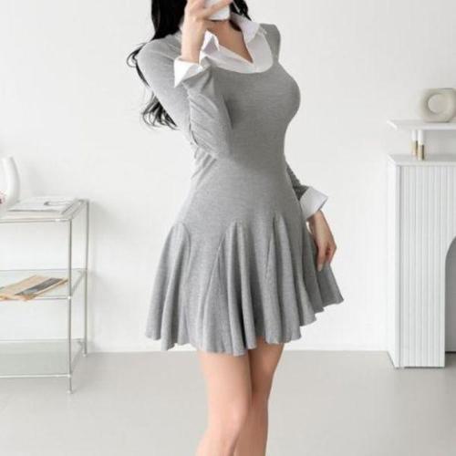 [옷자락]여성용 클래식 레이어드 칼라 플레어 미니 원피스