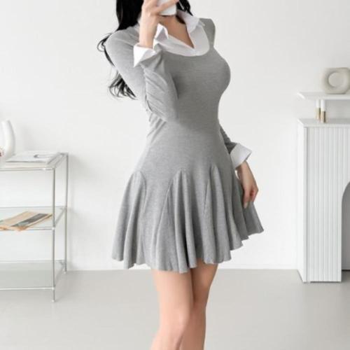 [신상오픈런]여성 클래식 레이어드 카라 미니 원피스 플레어 디자인