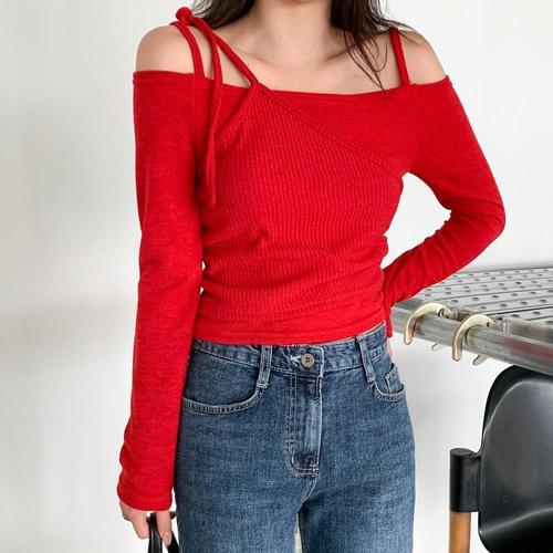 [미라클세븐]여성 레이어드 나시 오프숄더 크롭 긴팔 니트